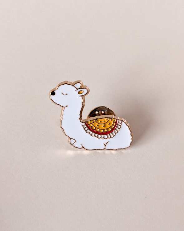 Say hello to Lahma, the white llama enamel pin designed by HelloKim.fr. With a golden saddle and a serene smile, she’s the perfect reminder to slow down and enjoy every stitch. Crafted with care and finished in gold enamel, this pin adds a playful and elegant touch wherever you place it — from your knitting tote to your favorite denim jacket.