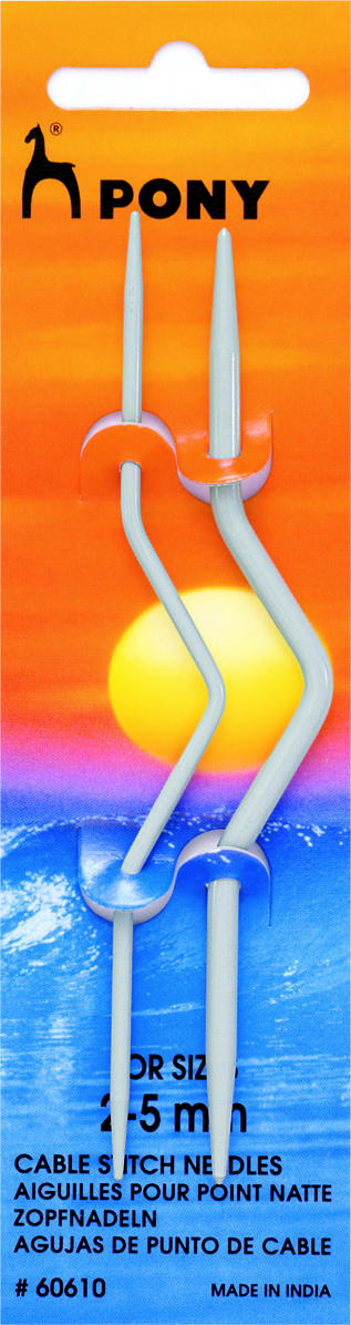 Knit perfect cables with ease using this Pony Cable Stitch Needle set. Each pack includes two lightweight aluminum needles (2.5 mm and 4.0 mm) with a gentle curve to hold stitches securely in place while you work. The smooth finish allows yarn to glide effortlessly, while the durable aluminum ensures years of use. Ideal for everything from classic Aran sweaters to cozy accessories, these tools are a must-have for any knitter who loves adding texture and twist to their projects.