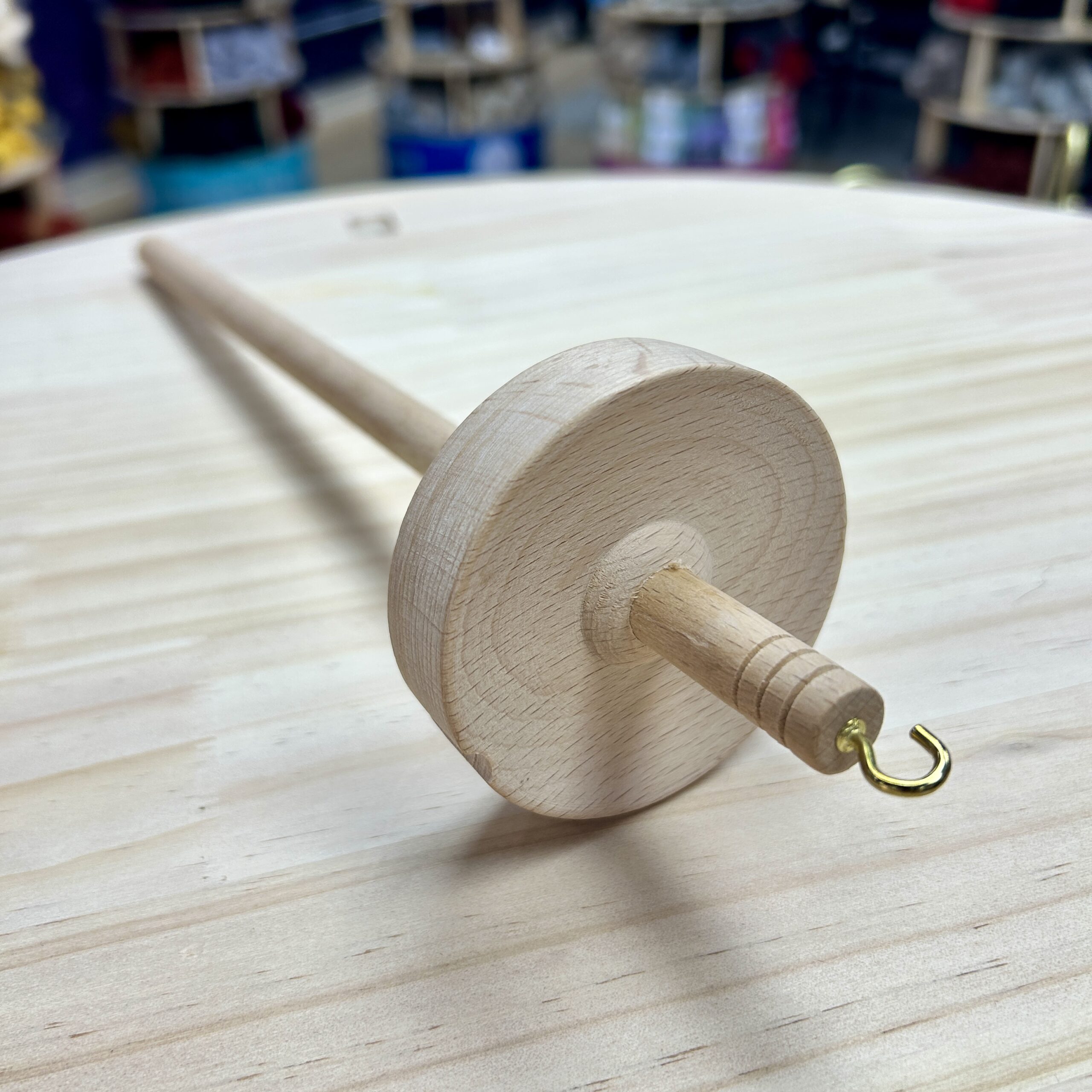 Spin your own yarn with this Wooden Drop Spindle, a simple, durable tool crafted from smooth beechwood. Designed with a 3″ whorl and weighing 2.8 oz (79 g), this spindle falls into the medium-weight range, ideal for spinning a wide variety of fibers from wool to alpaca. Its weight gives it steady momentum, making it beginner-friendly while offering control and versatility for more experienced spinners.