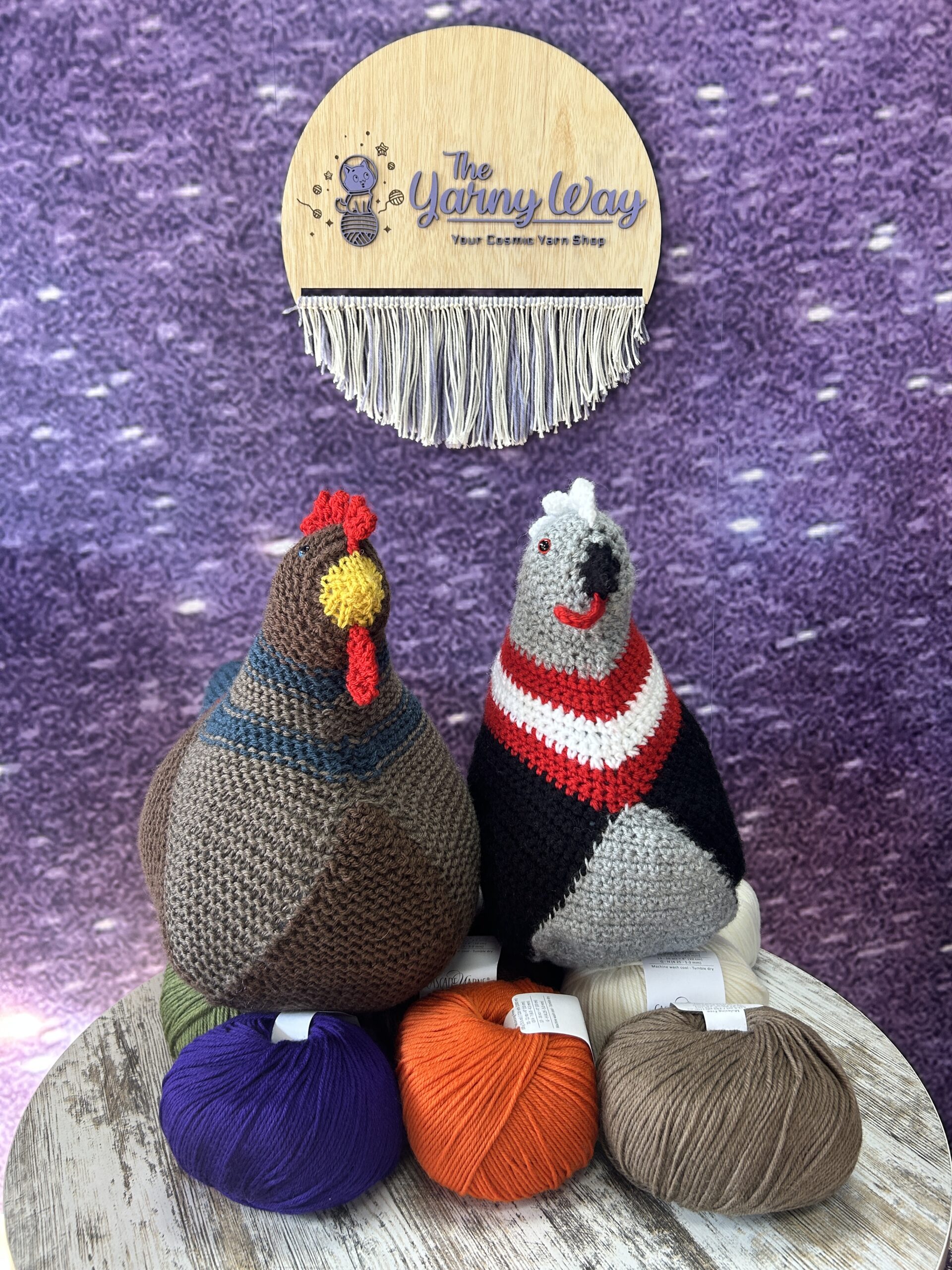 We’re thrilled to welcome Nakira as our new part-time shop assistant! Together we made Emotional Support Chickens (what a hoot ✨). She’s also been working on a hexagon granny cardigan with Ella Rae Marmel Duo and a rustic doily in Nifty Cotton Chive. Stop by and say hi when you see her!